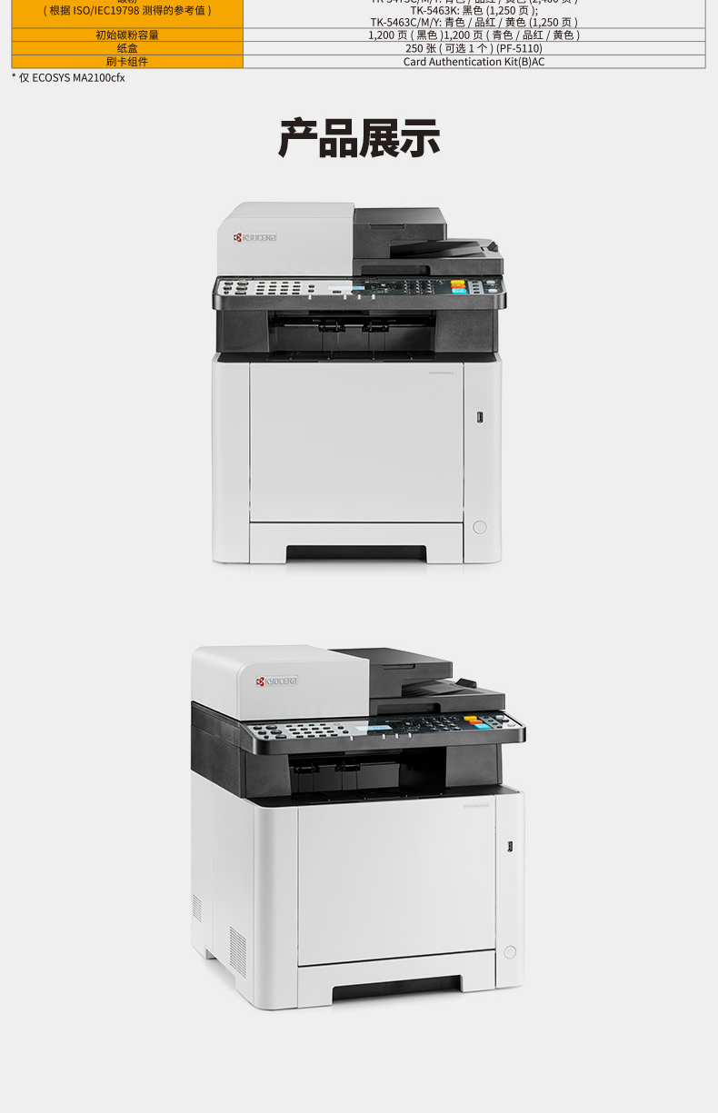 • 產(chǎn)品名稱:京瓷(KYOCERA)ECOSYS MA2100cx A4幅面彩色激光一體機(打印/復印/掃描)
