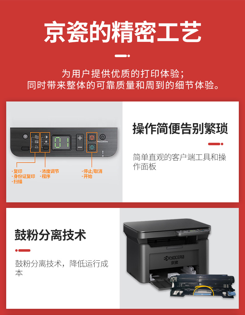 • 京瓷MA2000/MA2000w A4黑白激光多功能一體機(jī)(打印 復(fù)印 掃描)